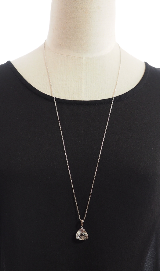 胸の少し下ぐらいまであるネックレスを言います。立ち振る舞いがエレガントに見え、少し改まった席などにもふさわしいネックレスです。ドレス・ワンピースにも。シャツの上に着けたり、タートルネックやハイネックに合わせると、カジュアルさと上品さが楽しめます。
