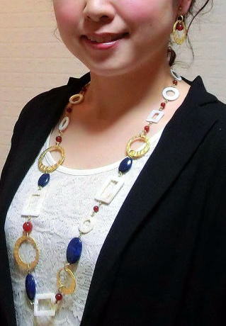 このタイプのネックレスは昔から、欧米の昼間の社交界でよく用いられていました。マチネーとは、フランス語で午前中の意味。転じて、ミュージカルや演劇などの昼の公演を指します。ワンピースやハイネック・タートルネックに合わせるとカジュアルさと上品さが楽しめます。胸元あたりまであります。ボリュームのあるデザインでも、バランスがとりやすい長さです。