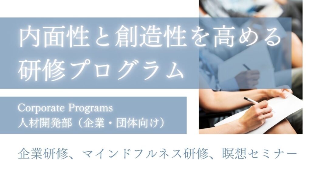 人材開発部について ― 働く人の集中力と心のセルフケアを支援 ― アトリエ ティー 人材開発部では、企業・団体向けにマインドフルネス社員研修を提供する部門です。日々の業務の中で生じるストレスや集中力の低下、コミュニケーシ … 続きを読む 人材開発部