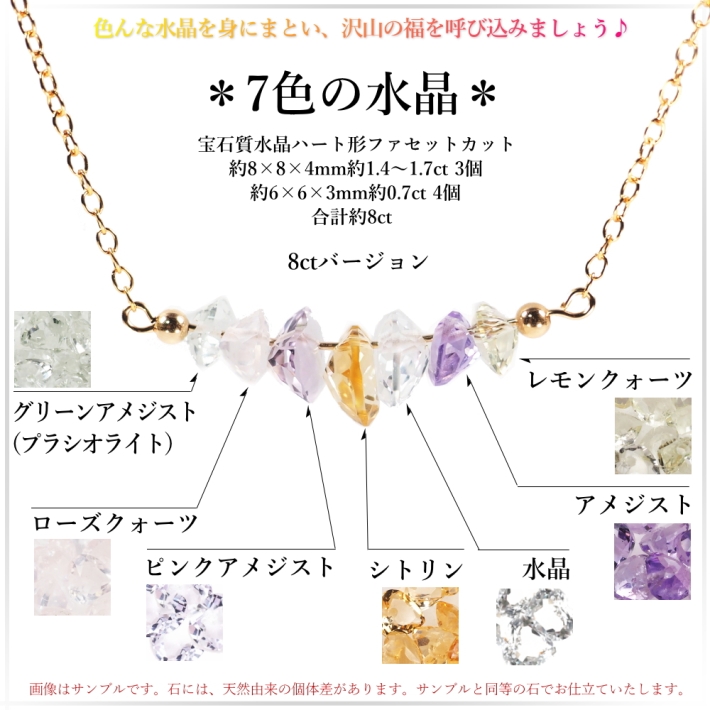 - ストーン(8ct):宝石質水晶7種ハート形ファセットカット