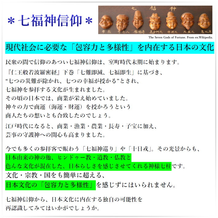 七福神信仰から、日本文化に内在する独自の可能性を、再認識してみてはいかがでしょうか。