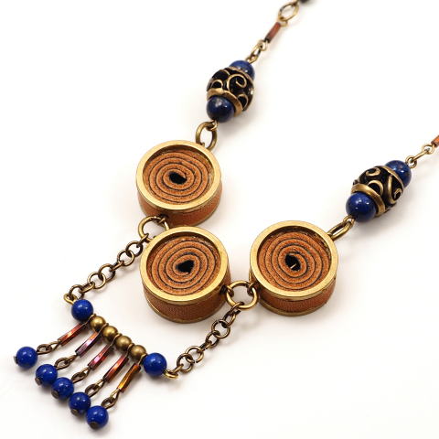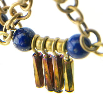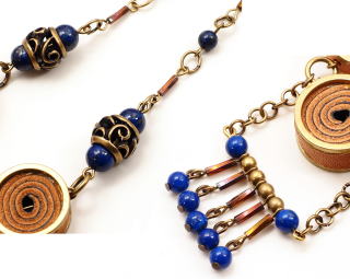 素材:金属(真鍮にメッキ加工)・天然石(ラピスラズリ)・皮革(牛革)・ガラス