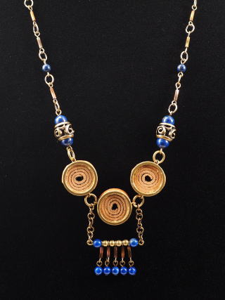 金古美(真鍮古美)色の金具とパーツ。金古美色からブロンズ色へと、色調変化するツイストビーズ
