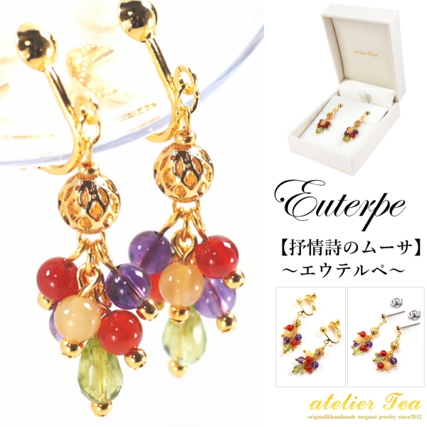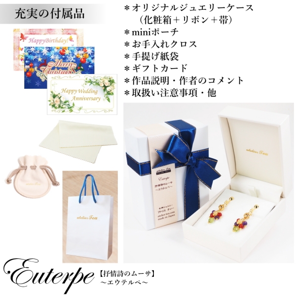 - イヤリングはネジバネ式(真鍮地にニッケルフリー金メッキ)樹脂カバー付き