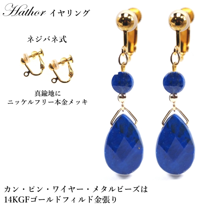 - イヤリング金具:ネジバネ式 真鍮製ニッケルフリー本金メッキ仕上げ 樹脂カバー付き