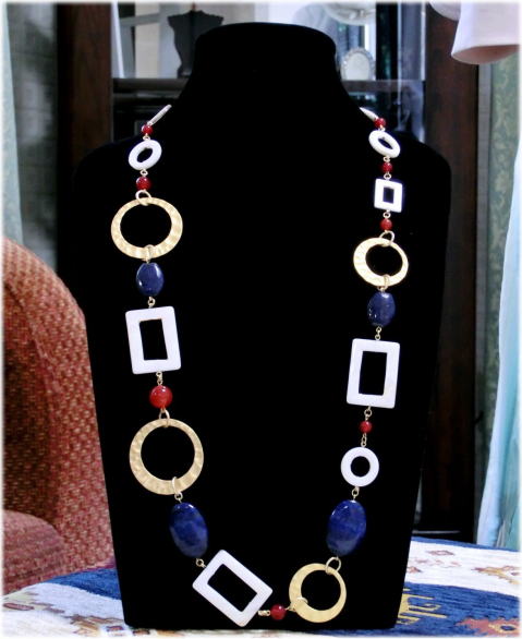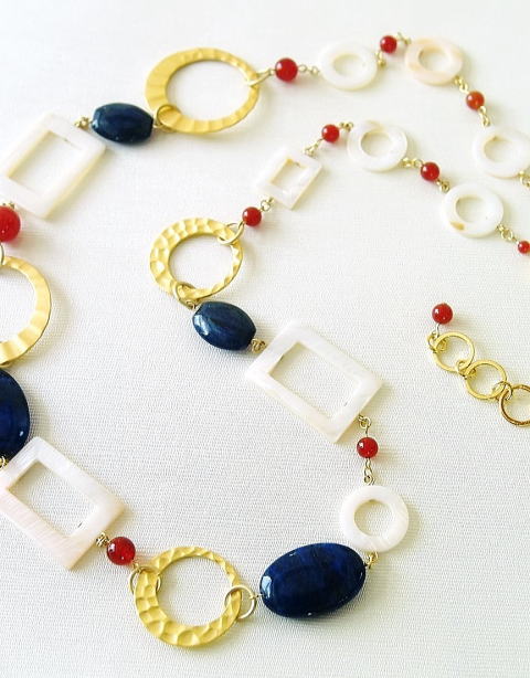 素材:天然石(ラピスラズリ・カーネリアン)・シェル・金属(真鍮にメッキ)