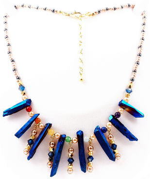 メタリックブルーを基調に、玉虫色に光ります。(ネックレス)