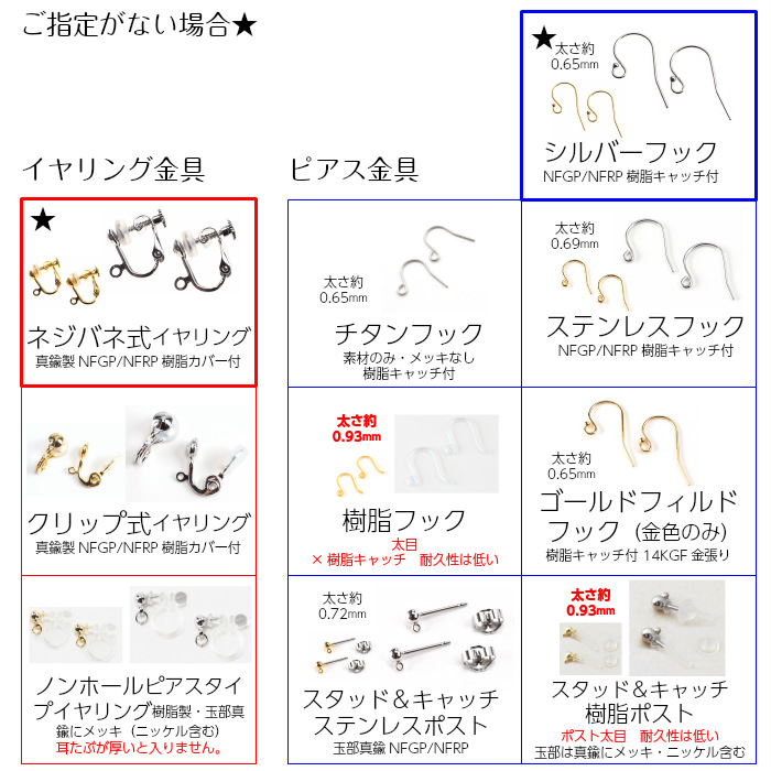ニッケルフリー本金orロジウムメッキ(ロンデル除く)