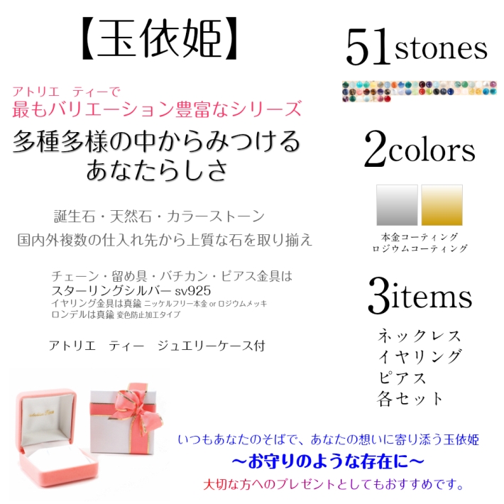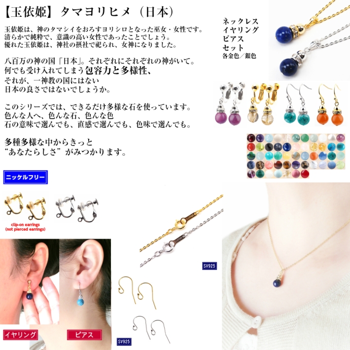 このタマヨリヒメシリーズは、できるだけ多様な石を使っています。色んな人へ、色んな石、色んな色。