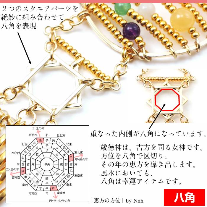 トップには、九星「一白・二黒・三碧・四緑・五黄・六白・七赤・八白・九紫」の色の天然石を。